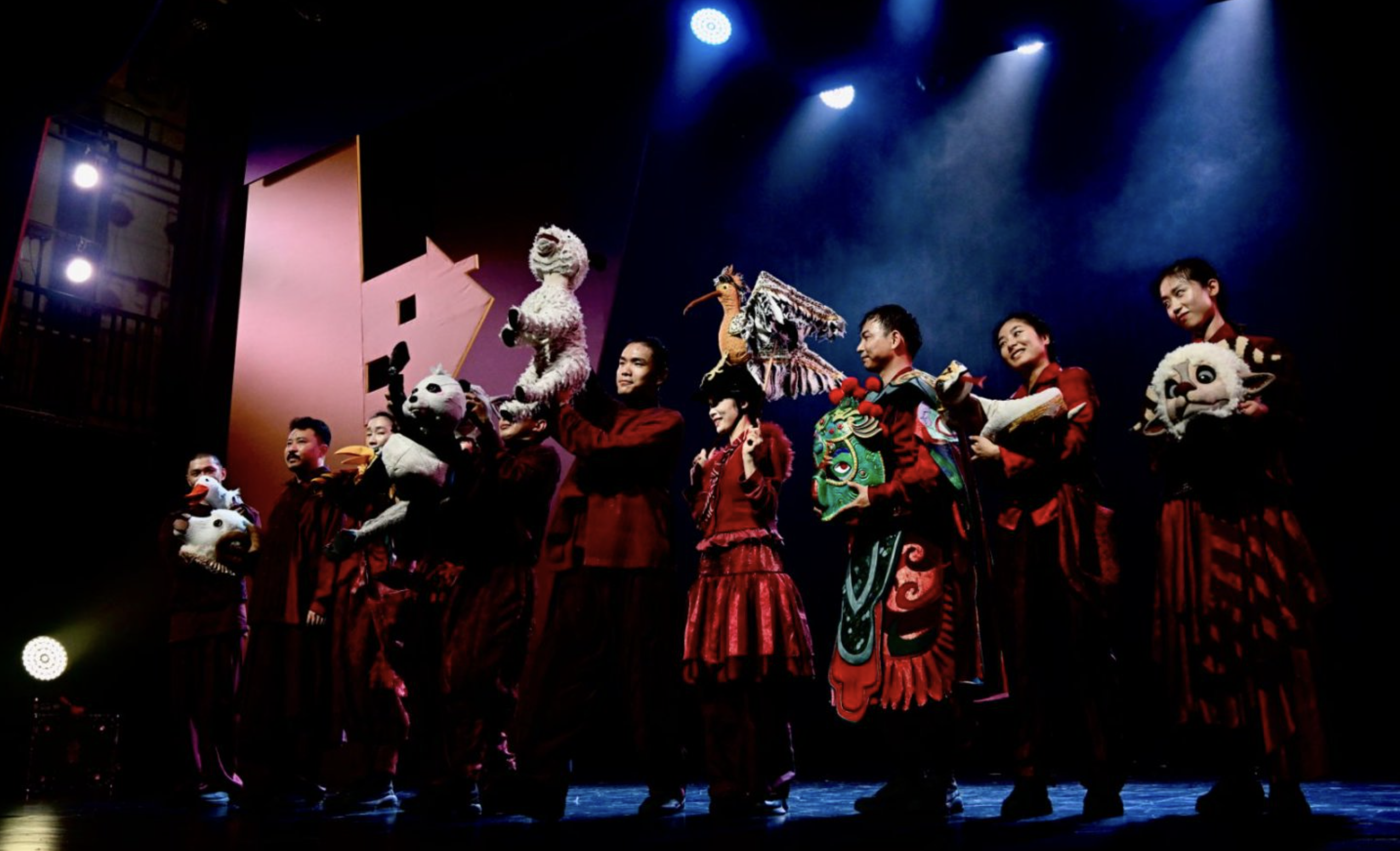 Inside a 100-seat theatre, a team of ten actors takes turns manipulating puppets and performing intricate scene transitions using Chinese opera techniques. Such a rich cast and elaborate form are considered a rarity in the OFF section of the Avignon Festival. The show weaves in elements of shadow play, paper cutting, and the Sichuan opera stylings of the circus master character, all infused with Chinese aesthetics.